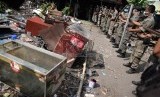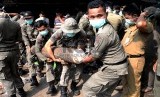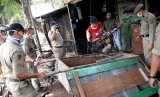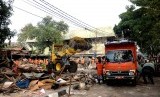 REPUBLIKA.CO.ID, JAKARTA -- Petugas melakukan penggusuran bangunan semipermanen di Cempaka Putih, Jakarta Timur, Kamis (23/7).