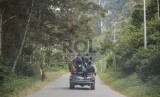 REPUBLIKA.CO.ID, TOLIKARA -- Rombongan Tim Pencari Fakta (TPF) KOMAT Tolikara yang diketuai oleh Ustaz Fadzlan Garamatan menerjang jalan yang berbatu di lereng gunung Kawasan Tolikara, Papua, Kamis (23/7).