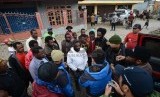 Rombongan Tim Pencari Fakta (TPF) Komat Tolikara yang diketuai oleh Ustadz Fadzlan Garamatan mewawancarai korban pembakaran masjid di tengah perjalanan menuju Tolikara, Papua, Kamis (23/7). (Republika/Raisan Al Farisi)