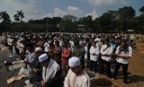 Warga Kota Bogor menggelar Shalat Istisqa' atau shalat meminta hujan di Lapangan Sempur, Kecamatan Tanah Sareal Kota Bogor, Jumat (24/7). (Republika/Edwin Dwi Putranto)