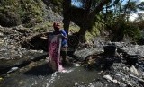 REPUBLIKA.CO.ID, TOLIKARA -- Warga beraktifitas di Sungai yang kering Wilayah Kabupaten Tolikara, Papua, Sabtu (25/7). Minimnya air bersih di wilayah tersebut memaksa warga untuk melakukan kegiatan mencuci, mandi hingga memasak air dari sungai yang mengalir di wilayah tersebut.