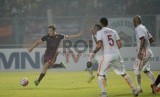 Pesepakbola AS Roma dari Tim Merah Francesco Totti (kanan) melepaskan tendangan pada pertandingan AS Roma Day 2015 di Stadion Utama GBK, Senayan, Jakarta, Sabtu (25/7).Republika/Edwin Dwi Putranto (FOTO : Republika/Edwin Dwi Putranto)