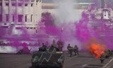 Prajurit TNI AL terlibat baku tembak dengan musuh saat Simulasi Latihan Kesehatan Terpadu TNI AL di Dermaga Madura Ujung Koarmatim, Surabaya, Jawa Timur, Selasa (28/7). (Antara//Zabur Karuru)