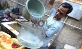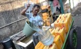 REPUBLIKA.CO.ID, JAKARTA -- Pedagang air mengisi jerigen untuk dijual di Jakarta, Selasa (28/7).