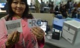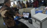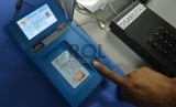 REPUBLIKA.CO.ID, JAKARTA -- Petugas memeragakan penggunaan alat pemindai e-ktp yang terintegrasi dengan perangkat e-voting di kantor Badan Penerapan dan Pengkajian Teknologi (BPPT), Jakarta, Rabu (29/7).