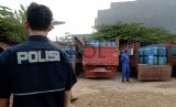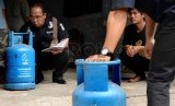 Petugas Krimsus Polda Metro Jaya memeriksa tabung gas elpiji 12 kg di kawasan Kebon Jeruk, Jakarta, Kamis (30/7).  (Republika/Yasin Habibi) (FOTO : Republika/ Yasin Habibi)