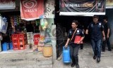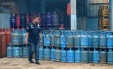 REPUBLIKA.CO.ID, JAKARTA -- Petugas Krimsus Polda Metro Jaya merazia sebuah toko penjual tabung gas elpiji 12 kg di kawasan Kebon Jeruk, Jakarta, Kamis (30/7).