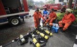 REPUBLIKA.CO.ID, JAKARTA -- Petugas pemadam kebakaran melakukan pendinginan saat kebakaran di basement Gedung Direktorat Pajak di Jakarta, Jumat (31/7).
