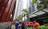Pemadam kebakaran mengerahkan 22 mobil damkar untuk memadamkan kebakaran yang terjadi di basement Gedung Direktorat Pajak.
