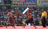 REPUBLIKA.CO.ID, MATARARAM -- Dua orang Pepadu (pemain presean) bertarung pada pertandingan presean di taman Udayana Mataram, NTB, Selasa (4/8).