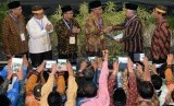 Tiga belas pimpinan pusat Muhammadiyah usai melakukan rapat menentukan ketua umum dan sekretaris umum disela-sela muktamar Muhammadiyah ke 47 di kampus Unismuh Makassar, Sulsel, Kamis (6/8). (Republika/Prayogi)