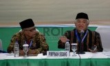 Ketua Umum PP Muhammadiyah Haedar Nashir dan mantan Ketua Umum PP Muhammadiyah 2010-2015 Din Syamsuddin sebelum serah terima jabatan saat sidang pleno muktamar Muhammadiyah ke 47 di kampus Unismuh Makassar, Sulsel, Jumat (7/8). (Republika/Prayogi) (FOTO : Republika/Prayogi)
