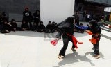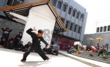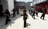 REPUBLIKA.CO.ID, BANDUNG -- Sejumlah murid mengikuti latihan perguruan pencak silat Panglipur, di situs penjara Banceuy, Kota Bandung, Ahad (9/8).