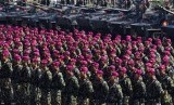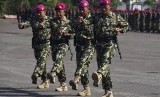 Sejumlah prajurit Korps Marinir berbaris mengikuti upacara Sertijab Komandan Pasmar-1 dan Komandan Pasmar-2 di Bumi Marinir Karangpilang, Surabaya, Senin (10/8). (Antara/Zabur Karuru)
