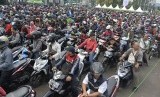 Ribuan warga Jabodetabek membawa motor mereka antre ketika mendaftarkan diri sebagai pengemudi ojek GRAB Bike di Senayan, Jakarta, Rabu (12/8). (Antara/Saptono)