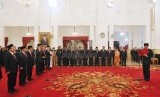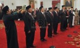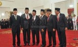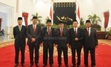 REPUBLIKA.CO.ID, JAKARTA -- Presiden Joko Widodo melantik enam orang menteri kabinet baru hasil reshuffle di Istana Negara, Jakarta, Rabu (12/8).