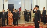 Presiden Joko Widodo melantik menteri kabinet baru hasil reshuffle di Istana Negara, Jakarta, Rabu (12/8). (Republika/Edwin Dwi Putranto)