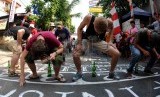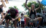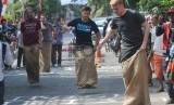 REPUBLIKA.CO.ID, JAKARTA -- Wisatawan dari mancanegara turut memeriahkan lomba 17 Agustus di Jalan Jaksa, Jakarta, Senin (17/8).