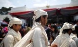 Warga baduy seusai mengikuti Upacara Peringatan Detik-detik Proklamasi 17 Agustus di Halaman Istana Merdeka, Jakarta, Senin (17/8). (Republika/Edwin Dwi Putranto)