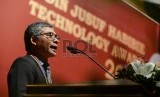 Warsito Purwo Taruno memberikan kata sambutan setelah menerima penghargaan B.J Habibie Teknologi Award 2015 di Gedung Badan Pengkajian dan Penerapan Teknologi (BPPT), Jakarta, Kamis (20/8). (Republika/Raisan Al Farisi) (FOTO : Republika/Raisan Al Farisi)