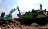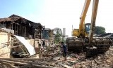 Alat berat membersihkan puing rumah usai pembongkaran paksa, Kampung Pulo, Jakarta, Ahad (23/8). (Republika/WIhdan)