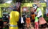 Kesenian ondel-ondel memeriahkan Lebaran Betawi di Lapangan Banteng, Jakarta, Ahad (23/8). (Republika/Wihdan)