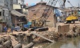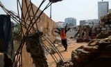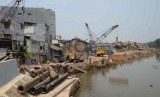 Pasca penggusuran, bantaran Ciliwung mulai dipasangi tiang pancang untuk normalisasi Sungai Ciliwung.