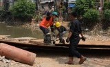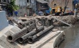 REPUBLIKA.CO.ID, JAKARTA -- Pemasangan tiang pancang normalisasi Sungai Ciliwung mulai dilaksanakan di Kampung Pulo, Jatinegara, Jakarta, Selasa (25/8).