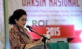 Menteri Kesehatan Nila Djuwita F Muluk memberikan paparan saat pembukaan Forum Riset Vaksin Nasional (FRVN) 2015 di Jakarta, Rabu (26/8). (Republika/Wihdan) (FOTO : Republika/ Wihdan)