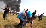 Sejumlah penumpang saat dievakuasi dari pesawat jenis PK-NKR yang terbakar pada kegiatan Airport Emergency Execise Manuk Dadali II di Lanud Husein Sastranegara, Kota Bandung, Rabu (26/8). (foto : Septianjar Muharam)