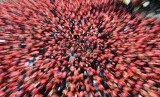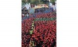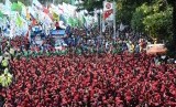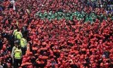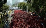 REPUBLIKA.CO.ID, JAKARTA -- Ribuan buruh melakukan aksi jalan kaki bersama dari bundaran Patung Kuda menuju Istana Negara, Jakarta Pusat, Selasa (1/9).