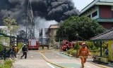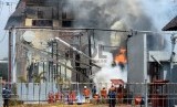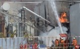 REPUBLIKA.CO.ID, JAKARTA -- Petugas pemadam berusaha memadamkan api yang melahap gardu induk PLN Interbus Transformer Kembangan, Jakarta Barat (2/9).