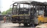 Sebanyak 15 bus yang sudah tidak terpakai terbakar pada Selasa (1/9) malam, kebakaran juga disertai ledakan besar dari salah satu bus.
