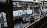 Puing bus transjakarta yang terbakar di pool PT Trans Batavia, Rawa Buaya, Jakarta Barat, Rabu (2/9). (Republika/Yasin Habibi) (FOTO : Republika/ Yasin Habibi)