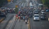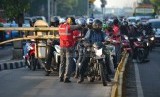 REPUBLIKA.CO.ID, Ratusan pengendara sepeda motor ngotot memasuki jalur busway yang ditutup oleh petugas di jalur TransJakarta di kawasan Mampang Prapatan, Jakarta Selatan, Kamis (4/9). Mentalitas penerabas dan penegakkan hukum yang tidal konsisten membuat jalur busway tidal pernah bisa benar-benar steril dari kendaraan pribadi.