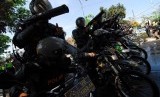 REPUBLIKA.CO.ID, BANDUNG -- Personel kepolisian dari Polrestabes Bandung dan Polda Jawa Barat melakukan simulasi pengamanan Pilkada di gedung KPU Jabar, Bandung, Jumat (4/9).