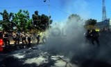 Simulasi tersebut menggambarkan suasana rusuh penolakan hasil pilkada dan penyelamatan pejabat KPU dari penyanderaan massa demonstran.