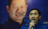 Ketua Fraksi Partai Demokrat Dewan Perwakilan Rakyat Edhie Baskoro Yudhoyono memberikan keterangan kepada media saat konferensi pers Partai Demokrat yang diadakan di Jakarta, Ahad (6/9). (Republika/Raisan Al Farisi)