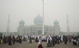 REPUBLIKA.CO.ID, PEKANBARU -- Kaum muslimin berdoa di halaman Masjid saat usai melaksanakan salat Istisqa' (minta hujan) di Masjid Agung An'nur Pekanbaru, Riau, Senin (7/9).