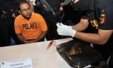 REPUBLIKA.CO.ID, DENPASAR -- Warga India Mohammed Said Sayed (tengah) digiring petugas bea cukai saat pengungkapan kasus penyelundupan narkoba di Kantor Bea Cukai Bandara Ngurah Rai, Denpasar, Selasa (8/9).