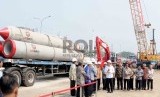 Presiden Joko Widodo beserta rombongan meninjau proyek pembangunan LRT, saat peletakan batu pertama (groundbreaking) tahap I di Jakarta, Rabu (9/9). (Republika/Agung Supriyanto) (FOTO : Republika/Agung Supriyanto)