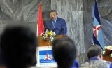 Ketua Umum DPP Partai Demkorat Susilo Bambang Yudhoyono menyampaikan pidato dalam puncak peringatan HUT ke-14 Demokrat di kompleks Parlemen, Senayan, Jakarta, Rabu (9/9). (Republika/Rakhmawaty La'lang) (FOTO : Republika/Rakhmawaty La'lang)