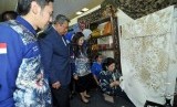 Ketua Umum Partai Demokrat Susilo Bambang Yudhoyono meninjau stand UKM puncak peringatan HUT ke-14 Demokrat di kompleks Parlemen, Senayan, Jakarta, Rabu (9/9). (Republika/Rakhmawaty La'lang) (FOTO : Republika/Rakhmawaty La'lang)
