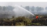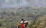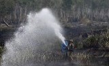 REPUBLIKA.CO.ID, Petugas Badan Penanggulangan Bencana Daerah (BPBD) Kabupaten Ogan Ilir melakukan pemadaman kebakaran lahan gambut dari udara di Daerah Sei Rambutan, Ogan Ilir, Indralaya, Sumatera Selatan, Kamis (17/9). Belasan hektar lahan gambut habis terbakar akibat oknum yang tidak bertanggung jawab.