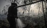 REPUBLIKA.CO.ID, Anggota Polri dan TNI memadamkan api di lahan gambut, Desa Rimbo Panjang, Kabupaten Kampar, Riau, Ahad (20/9).