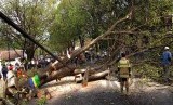Pohon tumbang yang di duga akibat angin kencang tersebut sempat memblokade akses lalu lintas di jalan Riau.
