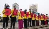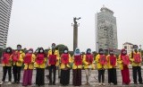 REPUBLIKA.CO.ID, JAKARTA -- Mahasiswa yang tergabung dalam Aliansi Gerakan Melawan Asap melakukan aksi unjuk rasa solidaritas melawan asap di Bundaran HI, Jakarta, Senin (21/9).