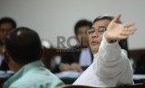 Mantan Ketua MK Akil Mochtar menunjukan surat permohonan saat sidang untuk memberikan kesaksian di Gedung Tindak Pidana Korupsi, Jakarta, Senin (21/9). (Republika/Raisan Al Farisi)