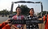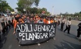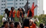REPUBLIKA.CO.ID, JAKARTA -- Mahasiswa Universitas Atma Jaya yang tergabung dalam FAMSI (Front Aksi Mahasiswa Semanggi) menggelar aksi damai menuntut keadilan atas pelanggaran HAM yang terjadi 16 tahun silam dalam tragedi Semanggi 2 di depan Istana Negara, Jalan Merdeka Barat, Jakarta, Jumat (25/9). Dalam kesempatan tersebut mereka menuntut janji Presiden untuk menyelesaikan kasus HAM berat masa lalu sesuai dengan janjinya pada kampanye pilpres lalu.