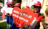 Anak-anak berfoto dengan tema hari jantung saat Peringatan Hari Jantung Sedunia 2015 di Senayan, Jakarta, Ahad (27/9). (Republika/Wihdan)